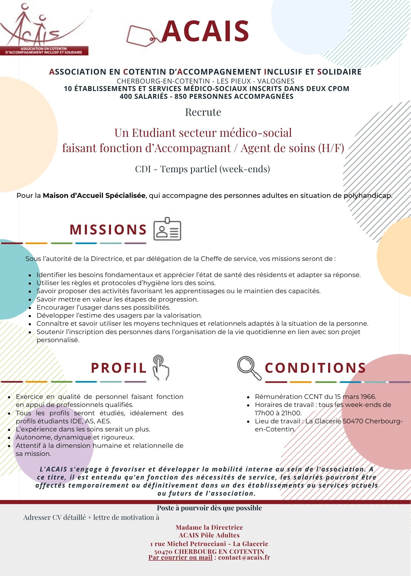 Vous avez le goût du contact humain ? Il vous tient à cœur d’accompagner les personnes dans leur quotidien ? N’hésitez pas, cette offre est pour vous !