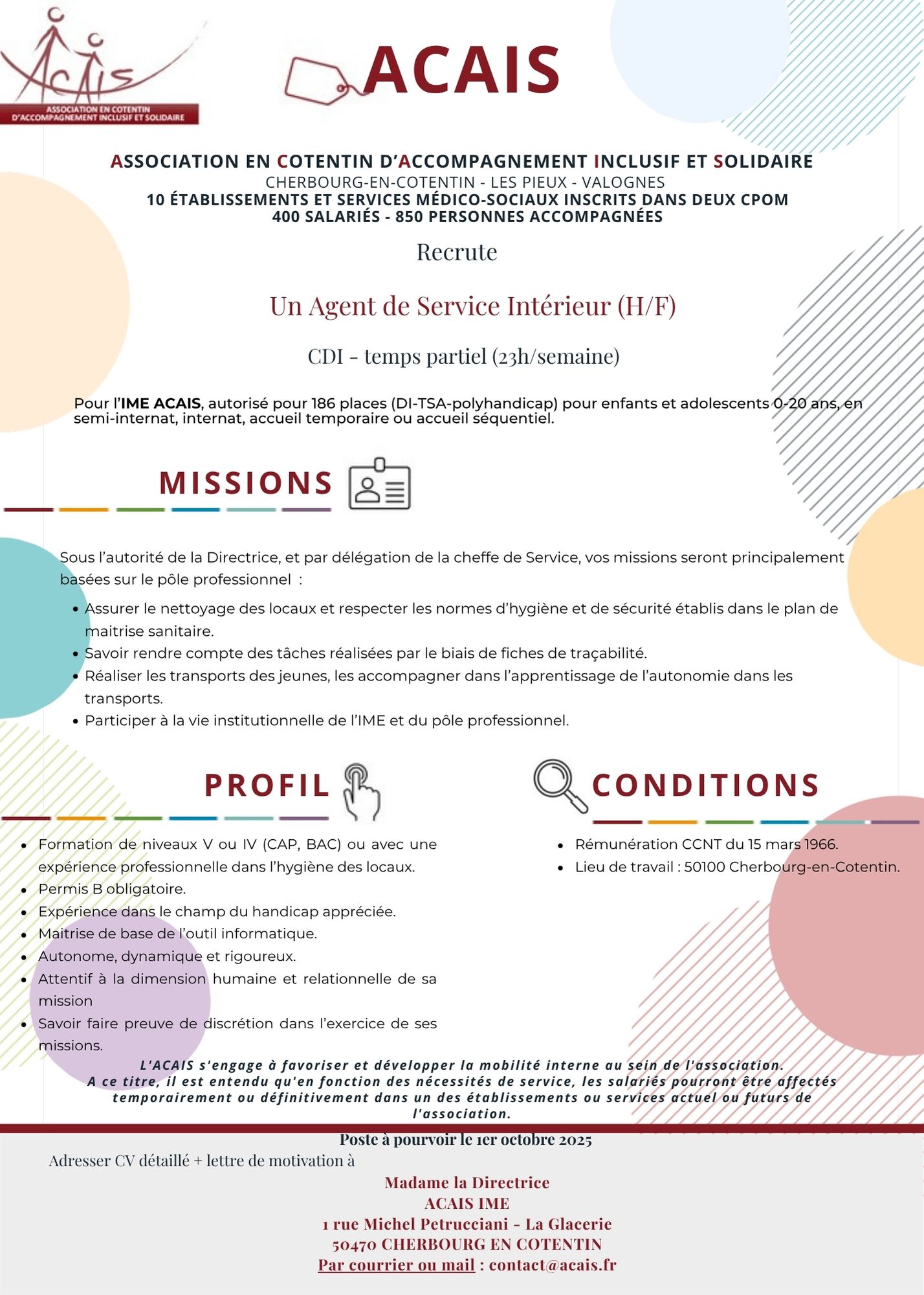 Poste à pourvoir courant octobre 2025