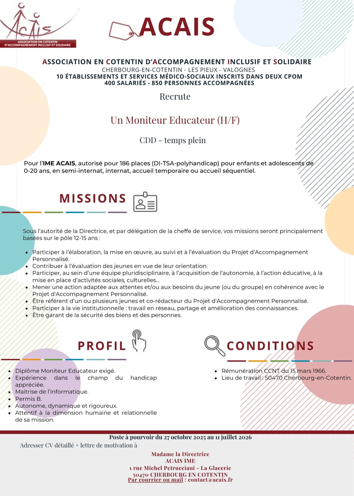 Poste à pourvoir du 27 octobre 2025 au 11 juillet 2026