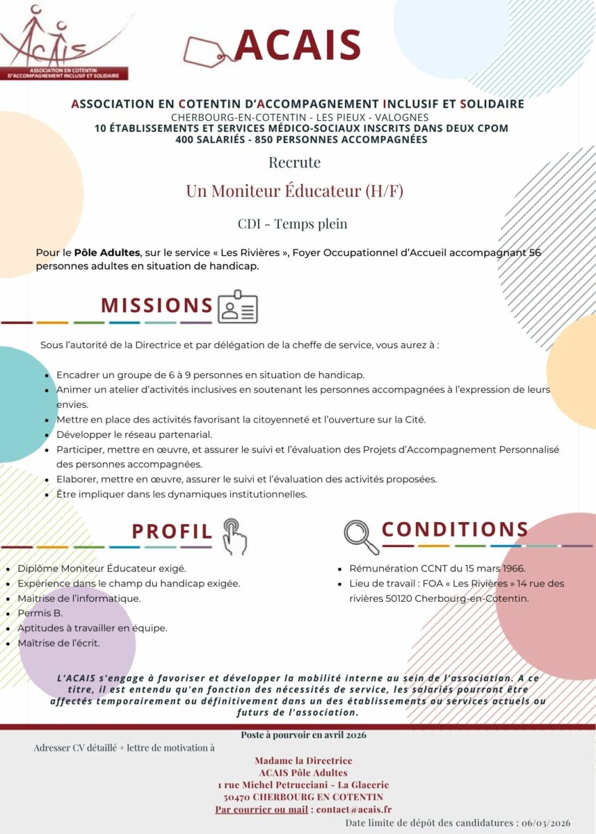 Poste à pourvoir en avril 2026