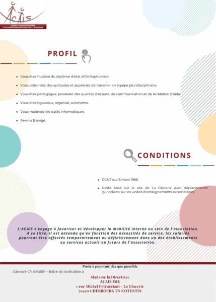 Poste à pourvoir dès que possible