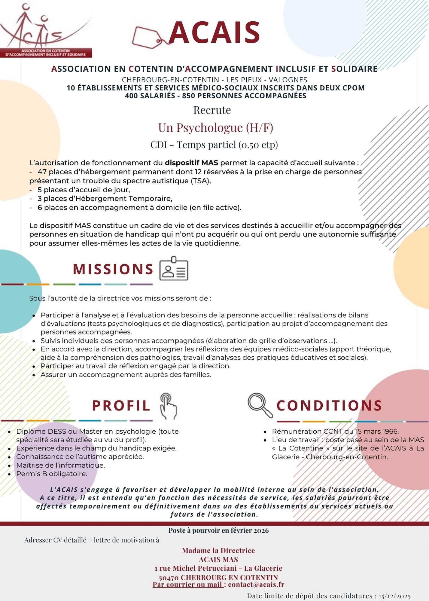 L’ACAIS s’engage à favoriser et développer la mobilité interne au sein de l’association. A ce titre, il est entendu qu’en fonction des nécessités de service, les salariés pourront être affectés temporairement ou définitivement dans un des établissement ou services actuels ou futurs de l’association.